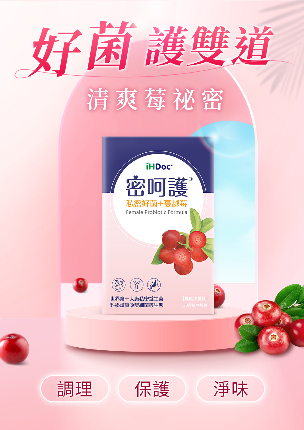 iHDoc®密呵護 私密好菌+蔓越莓(30粒/盒)3盒組-大樹藥局台灣官網正品